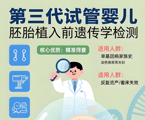 胚胎遗传学检测(三代试管):运用PGD/PGS技术对胚胎进行染色体筛查与遗传病诊断,提升健康妊娠率,适用于高龄、反复流产或家族遗传病史家庭。