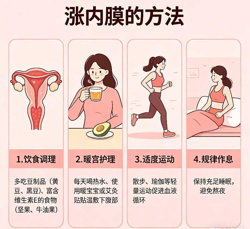 ① 规律作息:晚上10-11点前入睡,保证7-8小时睡眠,别熬夜,熬夜特别伤内膜;
